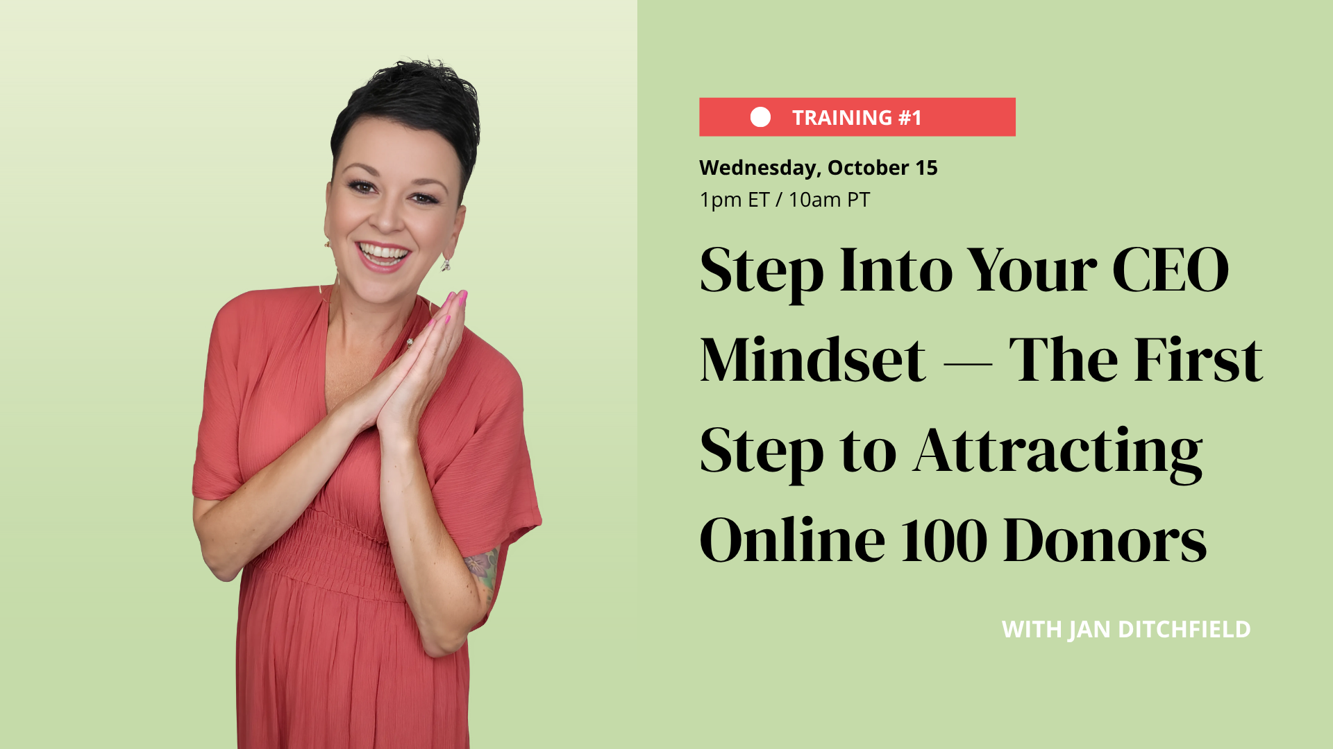 The Donor Magnet Bootcamp officially starts today! Join Jan for her welcome Live and learn more about what to expect in the Bootcamp over our time together. We'll see you there!