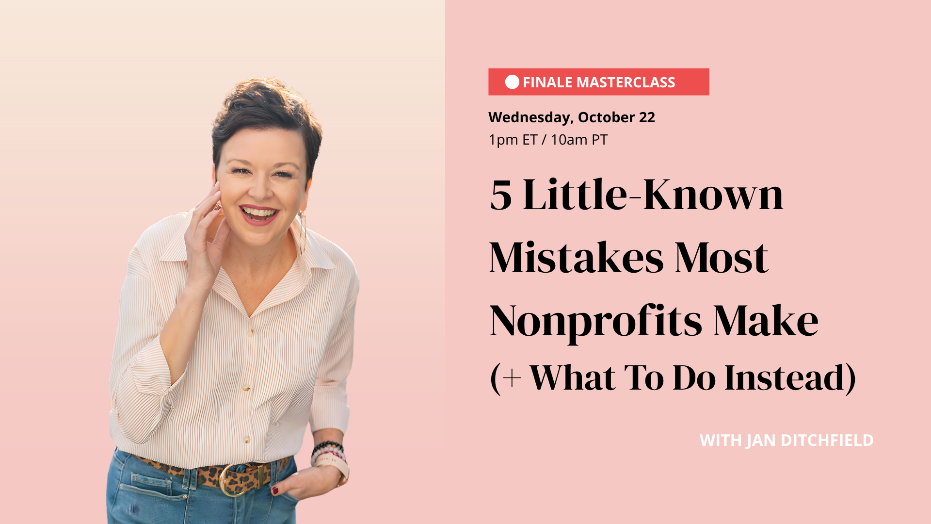 In this finale masterclass, I’ll reveal the 5 most common mistakes that keep nonprofits stuck in survival mode — and the practical steps to avoid them. You’ll see exactly how to take what you built in bootcamp and use it as the foundation for long-term stability.